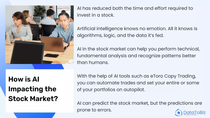 - Market Manipulation: There is a risk that market participants could manipulate AI algorithms to influence stock prices, leading to market distortions.